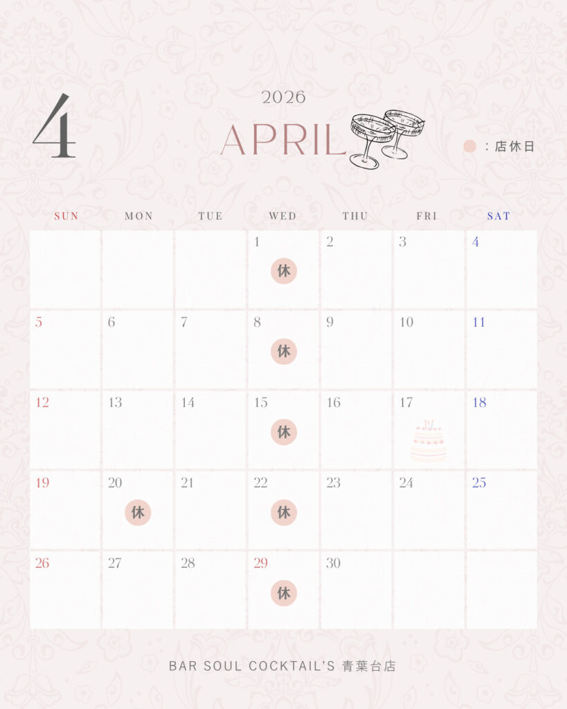【青葉台】3月営業日のお知らせ 【青葉台店】4月営業日のお知らせ いつもお世話になっております。青葉台店4月店休日のお知らせでございます。4月は通常通り水曜日を店休日とさせていただきますほか。4月20日(月曜日)を臨時店休日とさせていただきます。【営業時間】18:00〜3:00【ラストオーダー】フード 2:00ドリンク2:30予めご承知おきくださいますよう、よろしくお願いいたします。 News,青葉台店BLOG